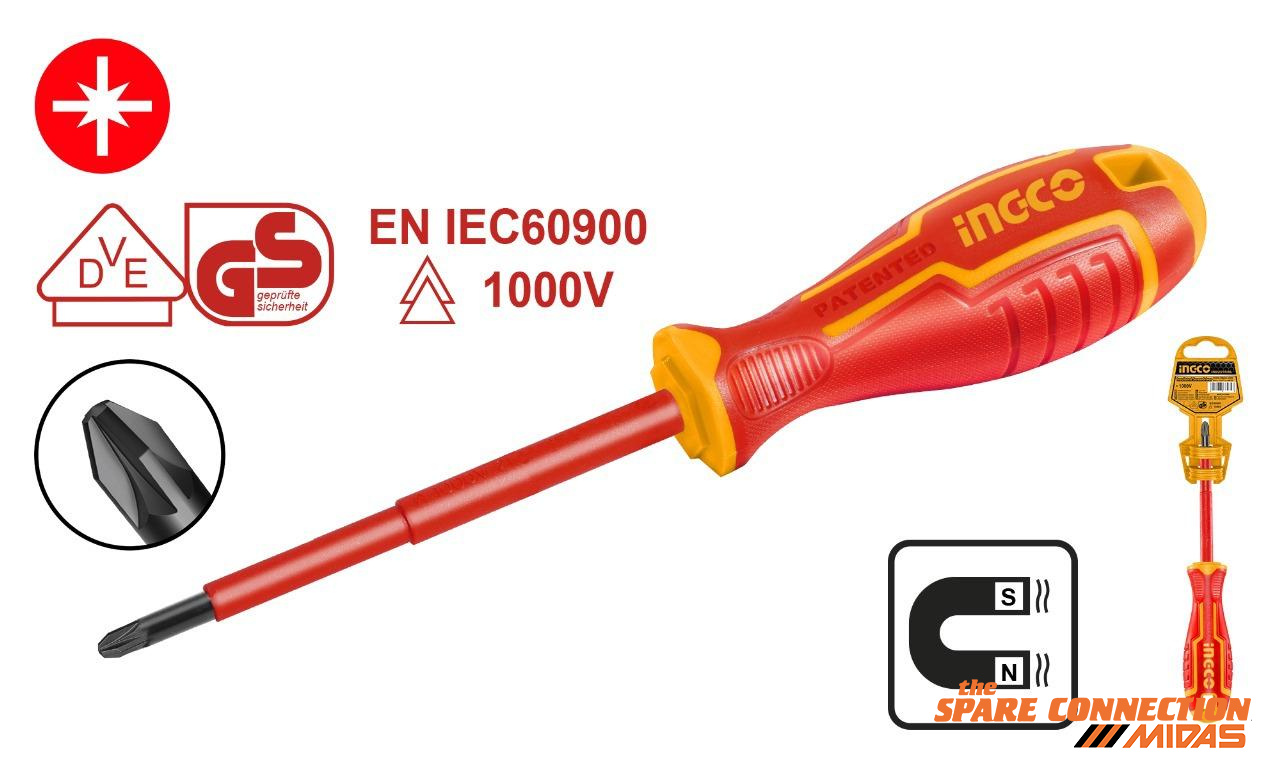 Insulated screwdriver1 000 VVDE + GS CertificationPZ2 x 100 mmCr-VRound Shank.New design handle.