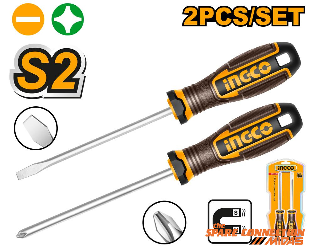 2 Piece screwdriver setBlade material: S2Shank type: roundHandle material: three-colour ergonomic
