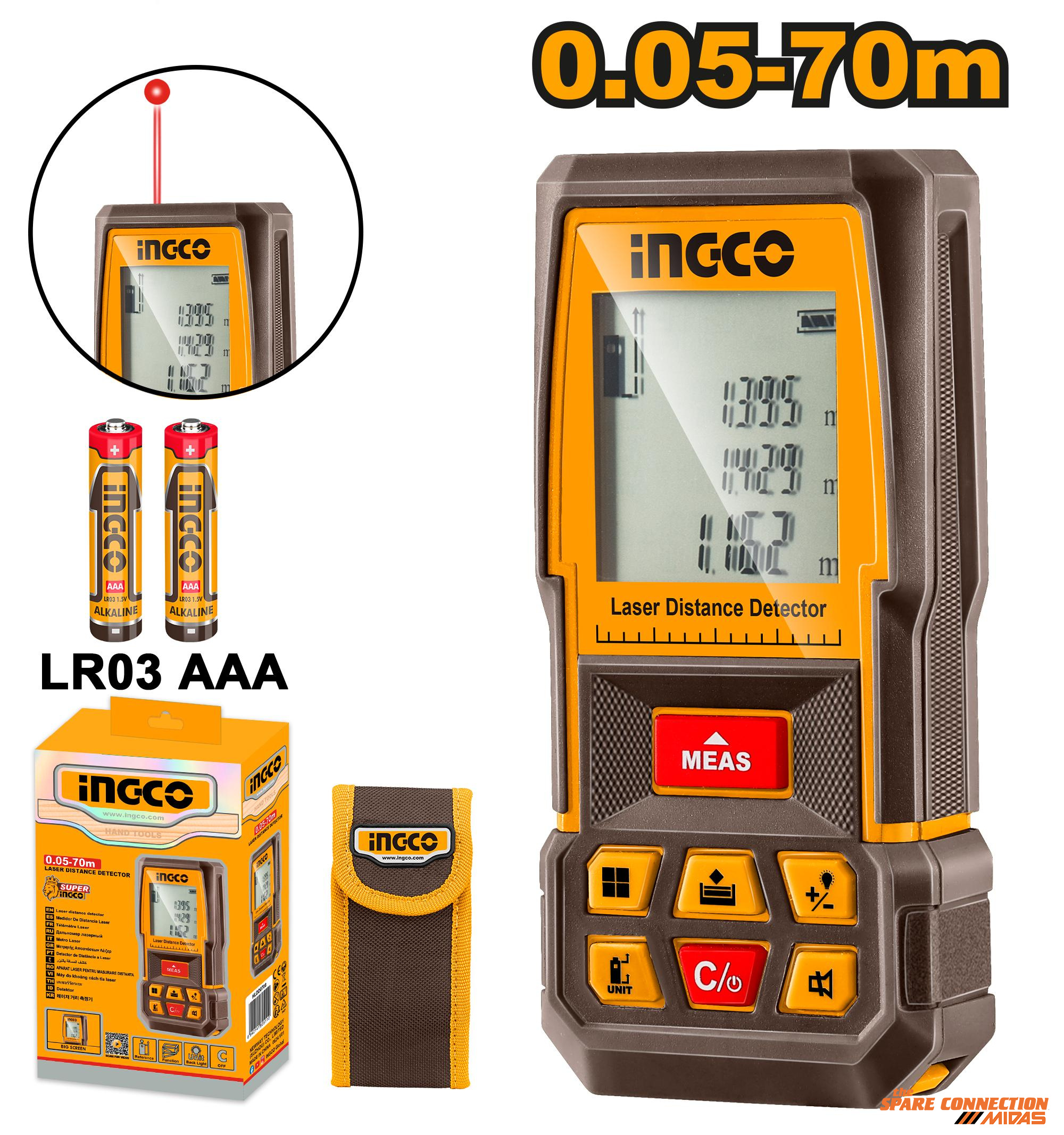 Measuring Range: 0.05 – 70 m. Measuring Accuracy: ±2.0 mm. Laser Type: 635nm, <1mW, Class 2. Function: single measurement/continuous measurement/