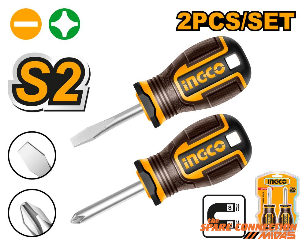 2 Piece screwdriver setBlade material: S2Shank type: RoundHandle material: Three-colour ergonomic