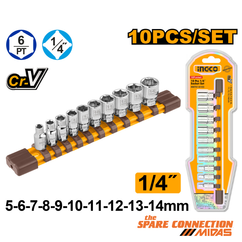 Includes:10 pieces 1/4″” sockets:5 – 6 – 7 – 8 – 9 – 10 – 11 – 12 – 13 – 14 mm