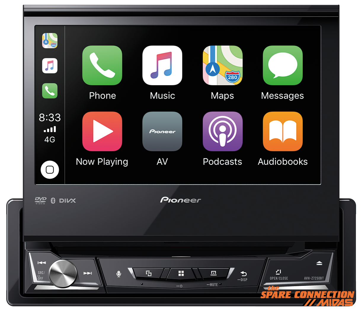 In-Dash 1-DIN DVD Multimedia AV Receiver with 7″ WVGA Touchscreen Display, Apple CarPlay, Android Auto, WebLink, Built-in Bluetooth and Full HD Video Playback from USB Device