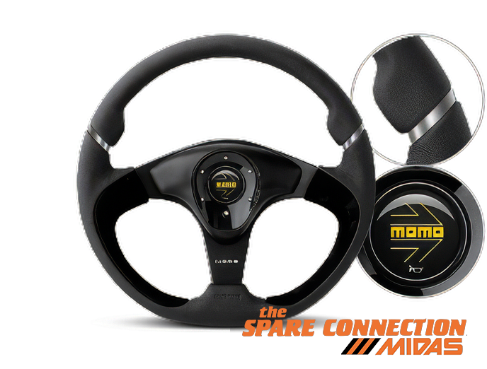 BLACK LEATHER, BLACK SUEDE, BLACK SPOKES, CHROME INSERTS.Ø 350 mm