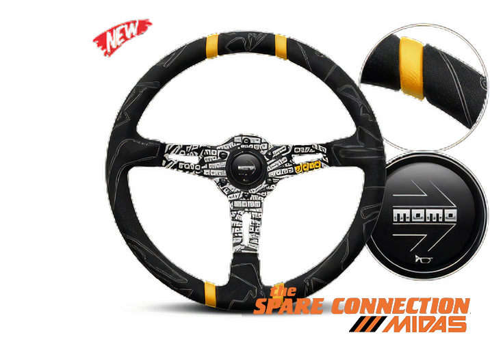 MOMO LOGO ON RIGHT INSERT, MATT BLACK HORN BUTTON. Ø 350 mm