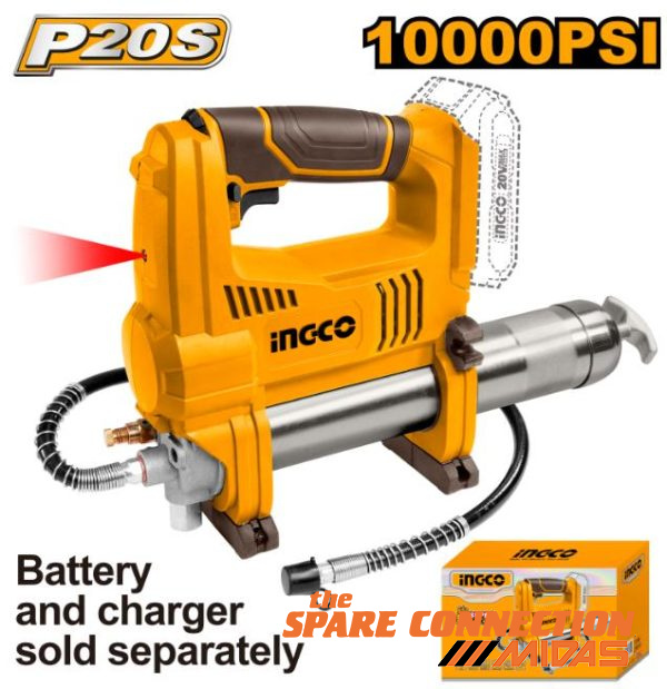Voltage: 20VPressure: 10 000 psi (690 bar)Volume/Flow rate: 282g/minHose length: 30″” (76 cm)Tool weight: 3.45 kgGrease capacity: 16 oz Bulk (453 g)14.5 oz Cartridge (411 g)Battery and charger sold separately