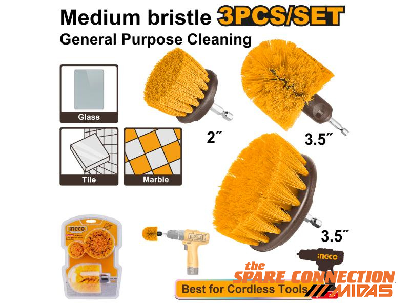 Includes:1 pieces 2" medium bristle Brush1 pieces 3.5" 360-Degree medium Brush1 pieces 3.5" medium bristle Brush