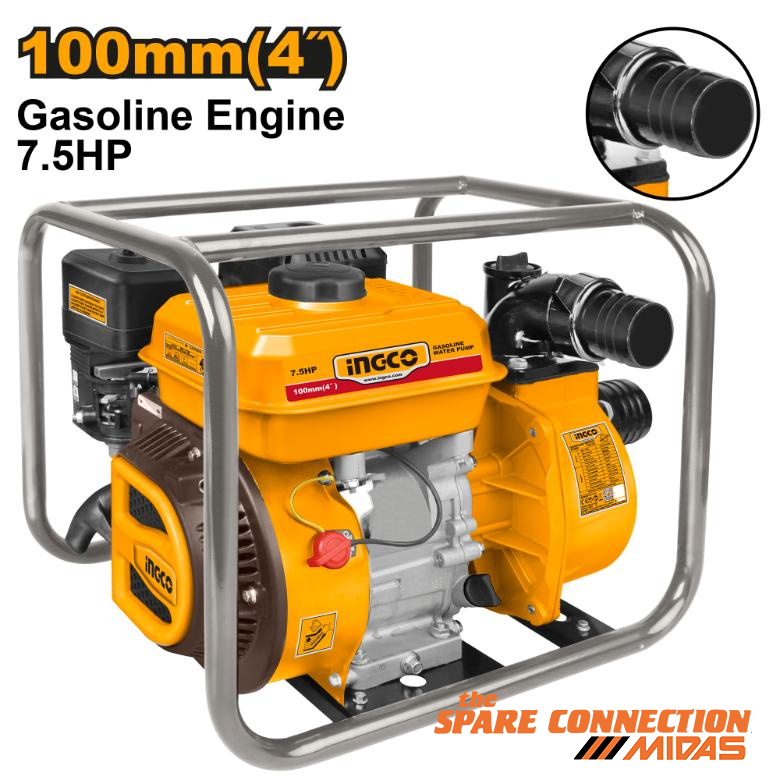Suction & Discharge port diameter: 100 mm, 4″Max.flow: 1 500L/minMax.head lift: 29mMax.suction head: 8m7.5HP gasoline engineDisplacement: 223ccFuel tank: 3.6LStarting system: Recoil