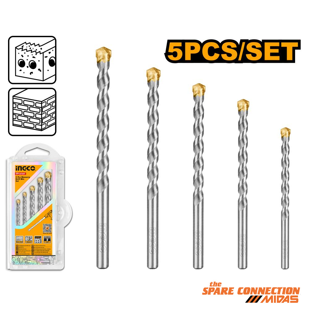 5 Pcs masonry drill bits set. Size:4X75,5X85,6X100,8X120,10X120. 5PCS Masonry drill bits setÂ