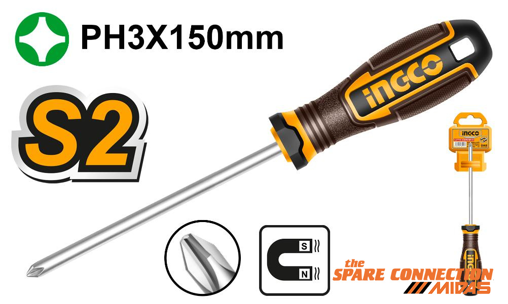 Blade material: S2Tip type: Phillips PH3 (magnetic)Blade length: 150 mmBlade diameter: 8.0mmShank type: roundHandle material: three-colour ergonomic