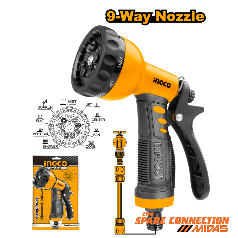 9-spray patterns - TPR insulated comfortable soft grip. - Nylon Lever