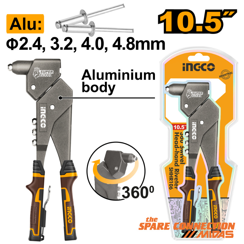 Size: 10.5″360° of rotation in the headSize: 2.4 mm, 3.2 mm, 4 mm, 4.8 mmApplicable rivet.Material: Steel + Aluminum