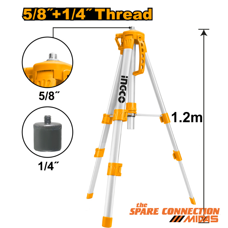 Top highlights · Telescopic tripod extendable up to 1.2 m · 5/8" and 1/4" thread (Reducer included) · Weight: 1 kg · Closed 45 cm