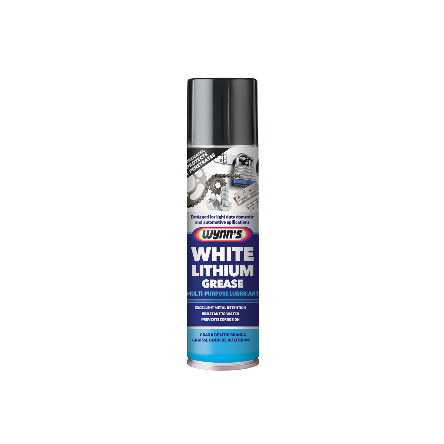 White Lithium-based Grease aerosol lubricant sprays on like a fluid, then congeals to a grease for prolonged lubrication intervals. Effective lubrication and protection for automotive, domestic and light duty applications, including battery terminals, locks, hinges, latches etc.