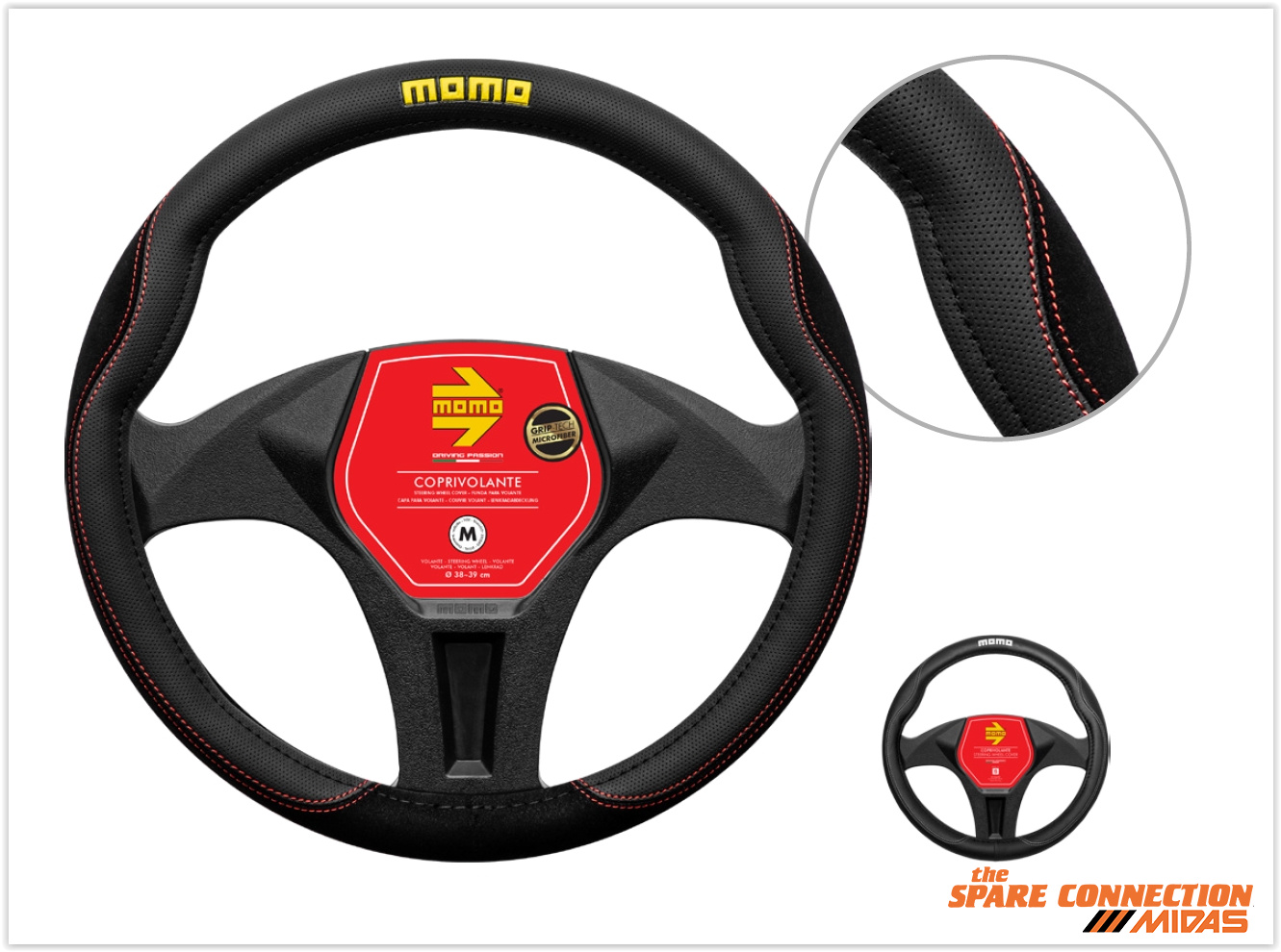 The MOMO Comfort Steering Wheel Cover is produced from the finest soft touch perforated polyurethane material and features a striking Italian design. The MOMO Comfort Steering Wheel Cover features an anti-slip rubber lining to prevent movement and the durable material will ensure it is long lasting. The universal fitment makes the steering wheel cover quick and easy to install. Finished with white stitching and a white MOMO logo at the top centre position, this cover also includes double stitching on the side grip.