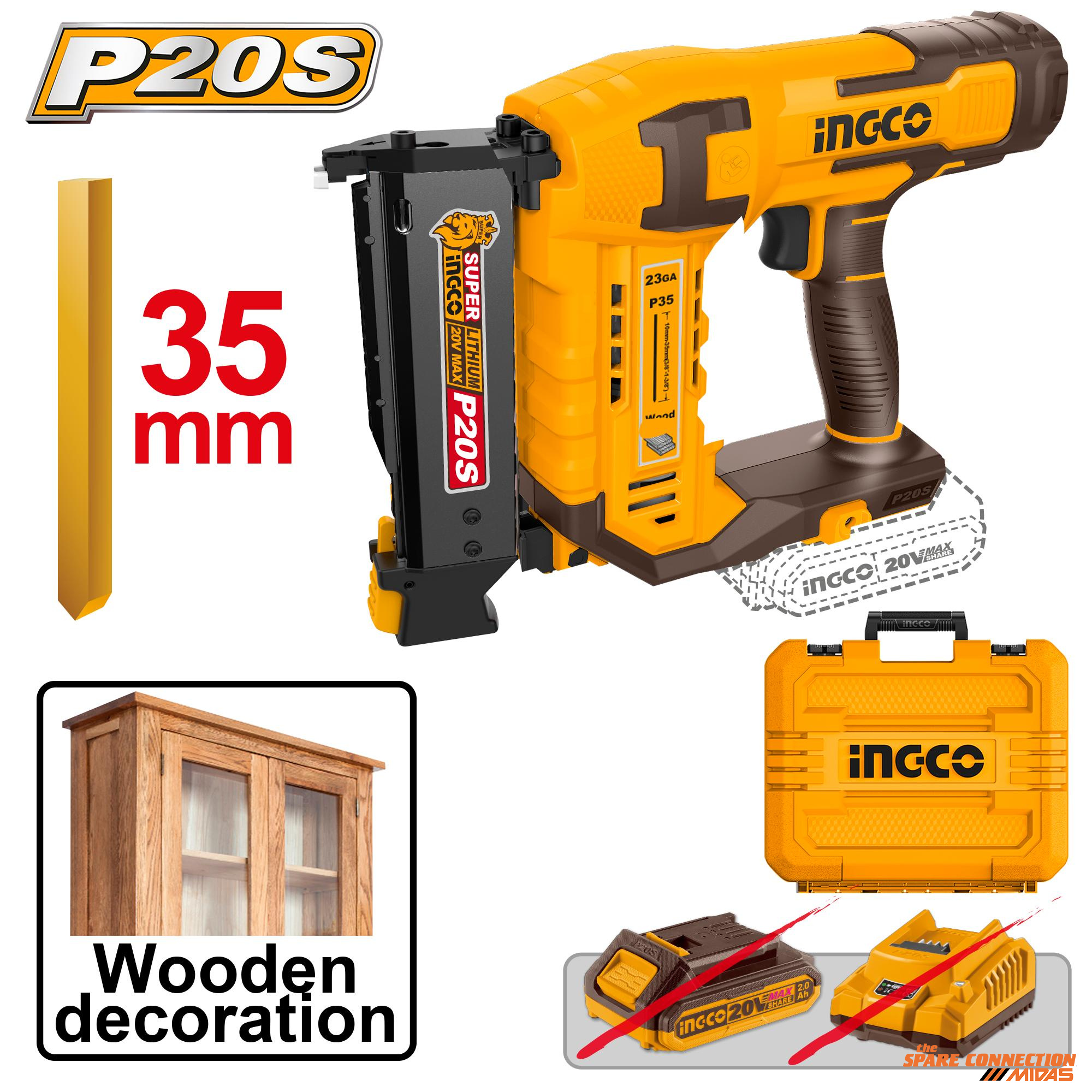 Voltage: 20VPin nailer type: 10 – 35 mmDrive rate: 3 nails/sMagazine capacity: 140 Piece