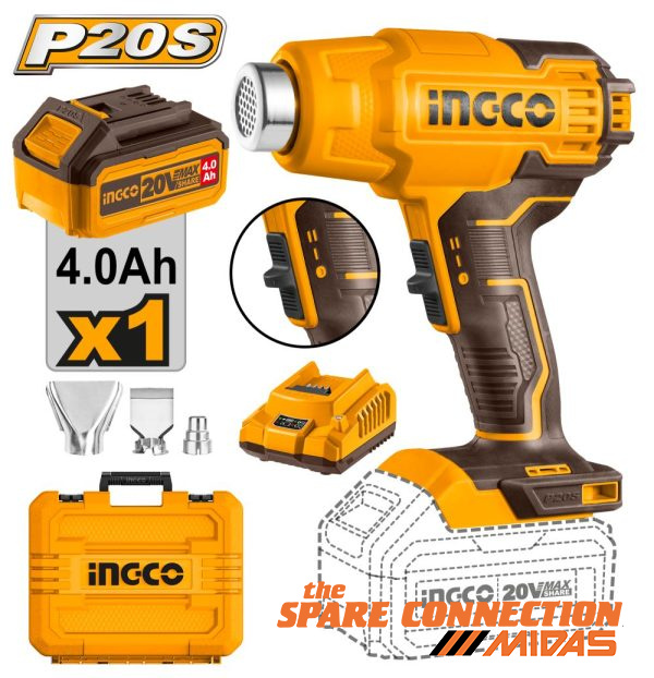 Voltage: 20VTemperature: 30 – 300℃/30 – 550°CAirflow: 100/200 L/minAdjustable temperature with LCD display for precise controlCharge volts: 220 – 240V ~ 50/60Hz
