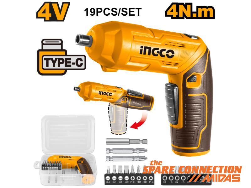Voltage: 4VHex shank: 1/4″”No-load speed: 240 rpmMax torque: 4NmTwo positions adjustable handleCharging via USB type-C cable (cable sold separately)Integrated work light.