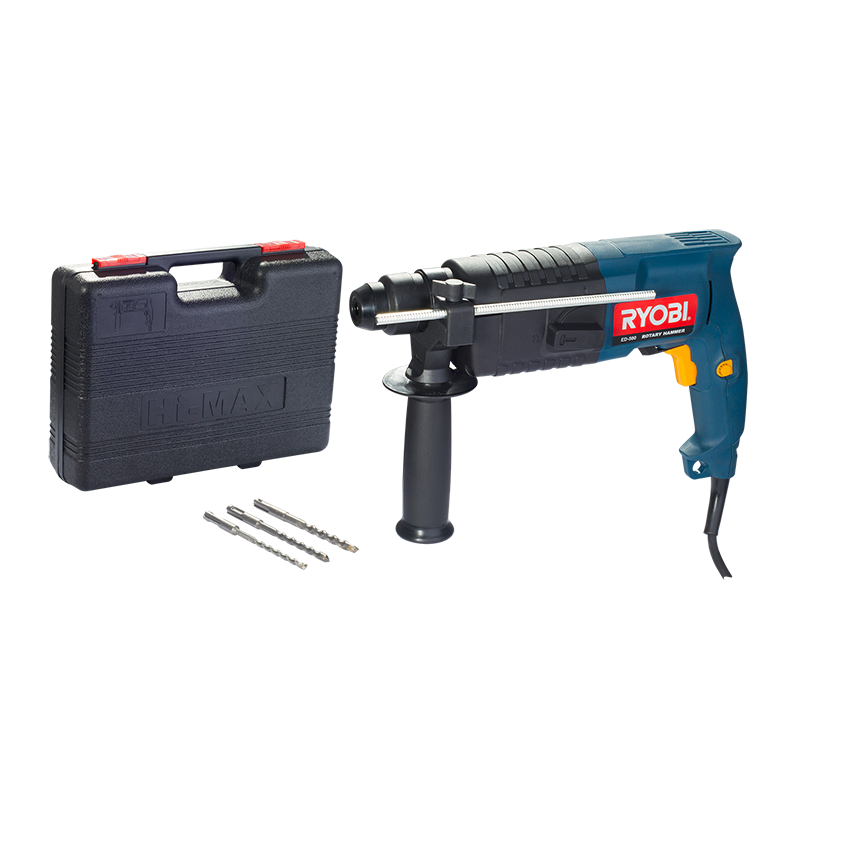 • 2 operating modes: drilling mode – hammer-drilling mode• Powerful 500 Watt motor with SDS-plus type shank Soft grip auxiliary handle rotates 360°• Complete in carry case with accessories:• 1x 6x150mm drill bit• 1x 8x150mm drill bit• 1x 10x150mm drill bit