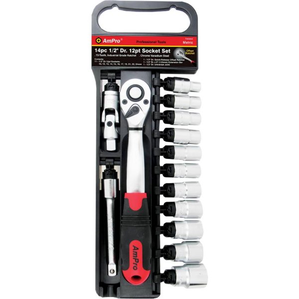AMPRO 14PC 1/2″ DR. 12PT SOCKET SET