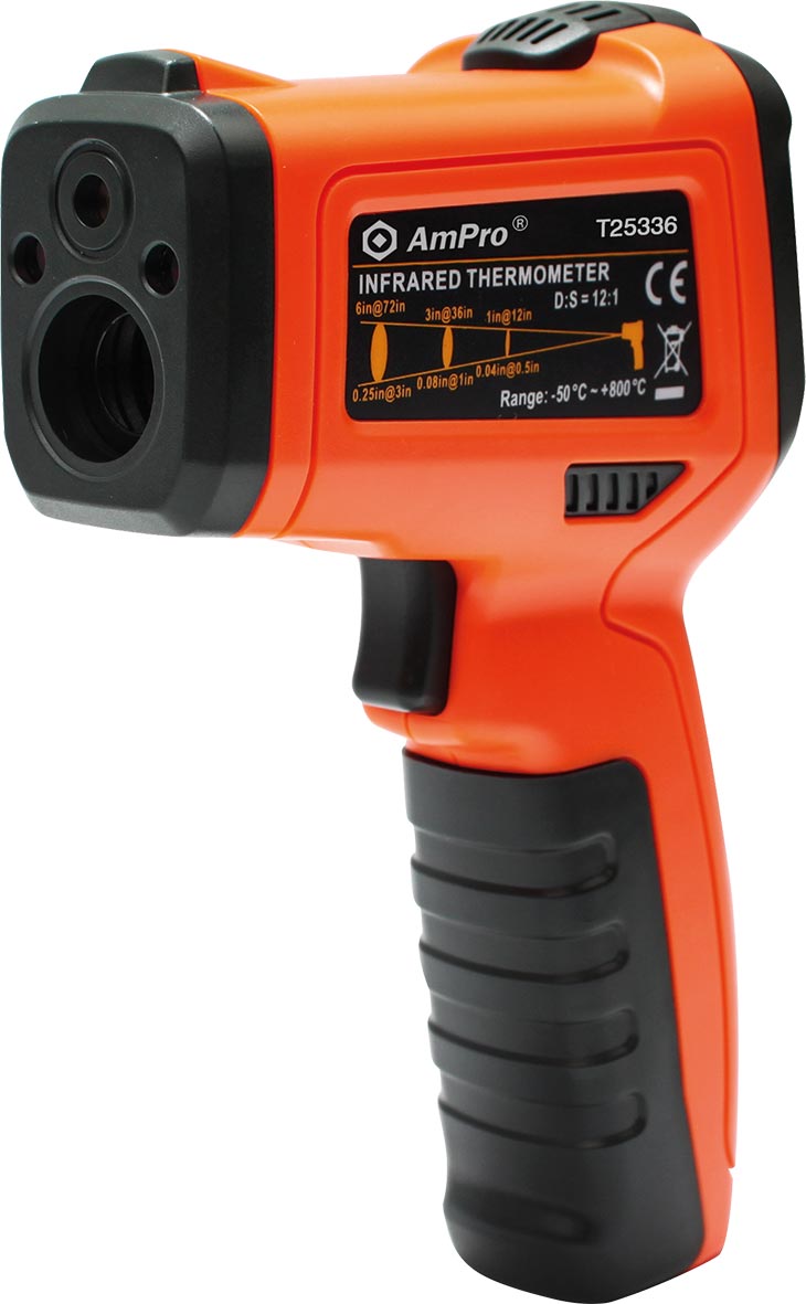 • Safely measure surface temperature at a distance from -50°C – 800°C (-58°F – 1472°F)