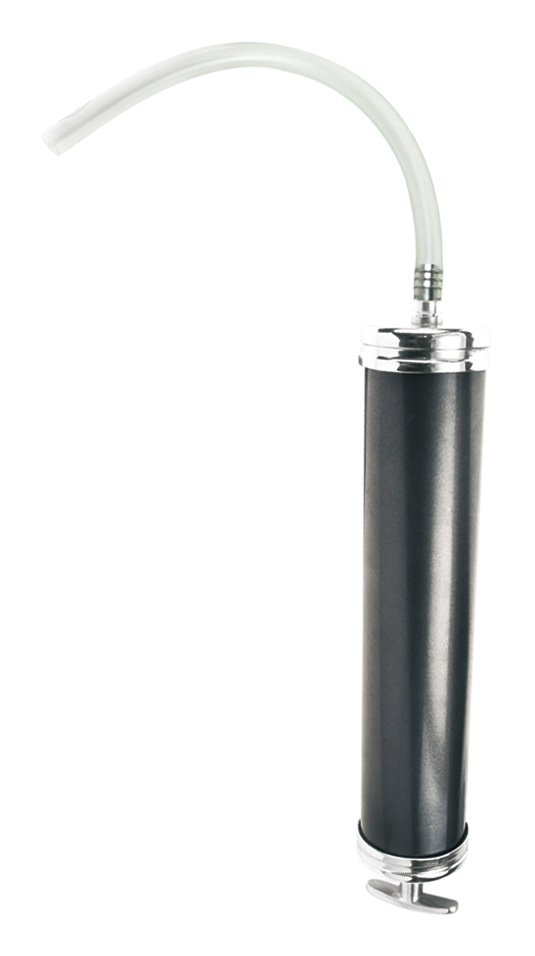 • Perfect for transmissions, differentials, gear cases, lowerunits, crankcases, etc.• Thick wall barrel construction, knurled for secure grip• Cast aluminum T-handle• Heavy duty die cast head cap• 12″ Flexible suction hose• 14oz. Capacity