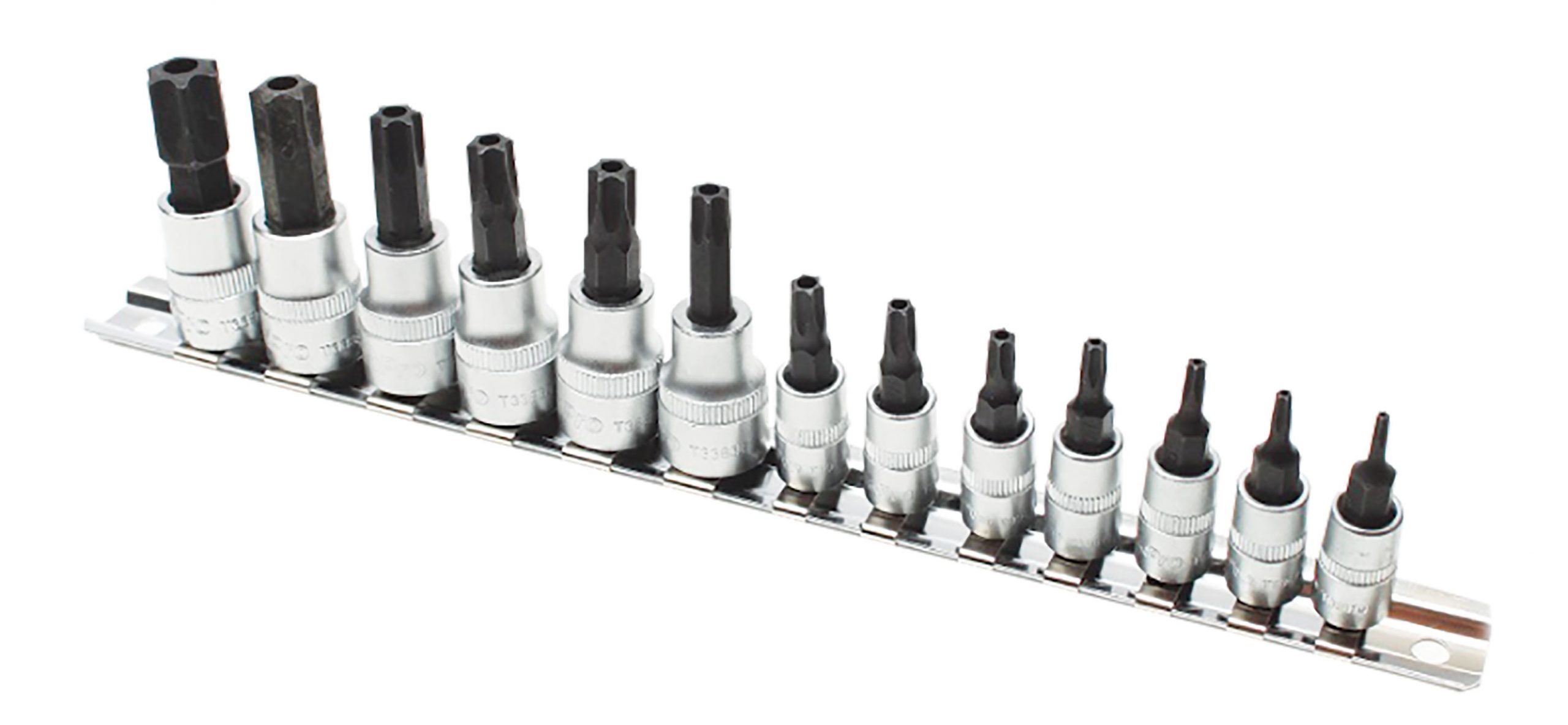 1/4″ Dr. – T8, T10, T15, T20, T25, T27, T30 (37mm)3/8″ Dr. – T40, T45, T47, T50, T55, T60 (48mm)